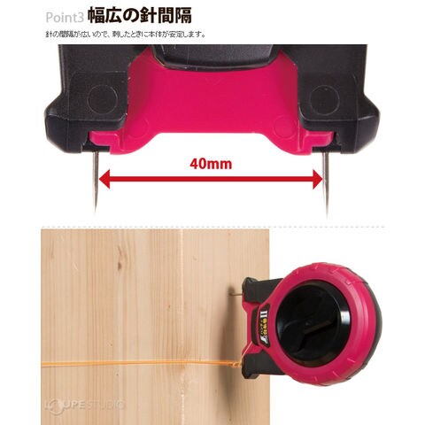 • 針の間隔が広いので、刺したときに本体が安定します。