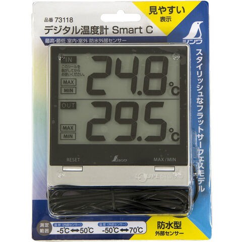 デジタル温度計 Smart C 最高 最低 室内・室外 防水外部センサー 73118 シンワ測定 温度計 デジタル 測定器 計測器