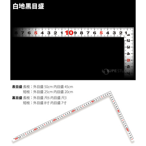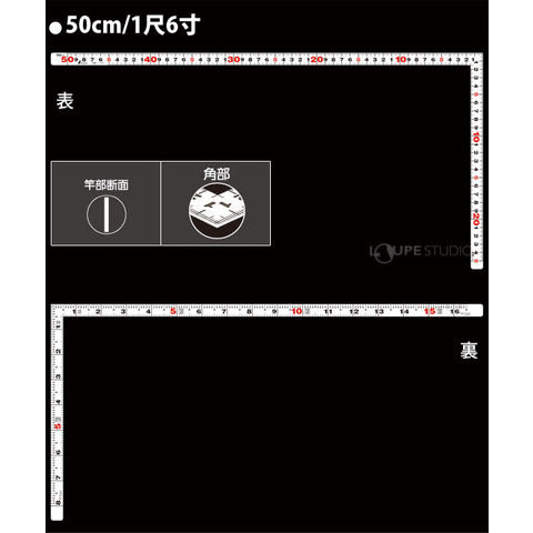 | 表目盛 | 長枝/外目盛 50cm 内目盛 45cm 短枝/外目盛 25cm 内目盛 20cm |