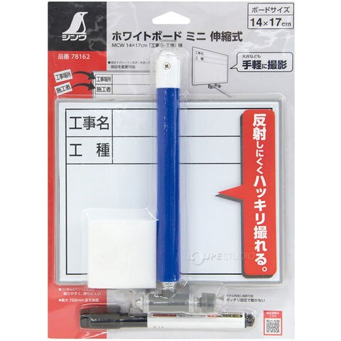 ホワイトボードミニ伸縮式 MCW 14×17cm[工事名・工種] 横 シンワ測定 黒板 DIY 建築用 作業ボード 工事現場 工具