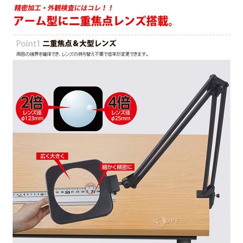 ルーペ Y フリーアーム型 123mm 2倍&4倍 二重焦点 シンワ測定 拡大 虫眼鏡 拡大鏡 検品 検査 作業 スペック