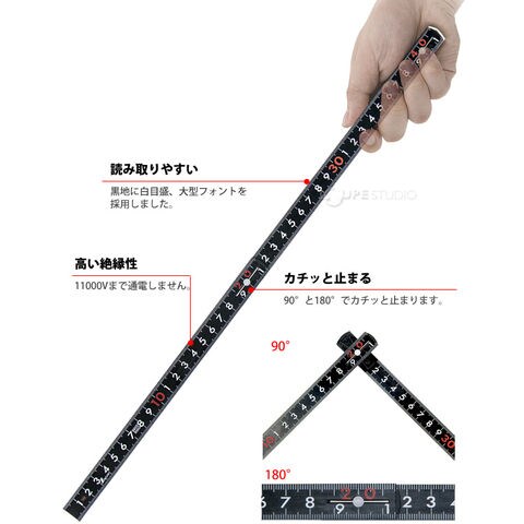 ファイバー 折尺 グラスファイバー 5折 1m cm表示 ブラック シンワ測定 スペック