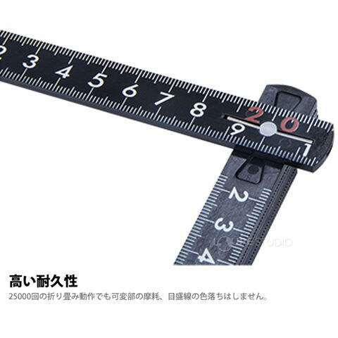 - 25,000回の折り畳み動作でも可変部の摩耗、目盛線が色落ちしない、高い耐久性です。