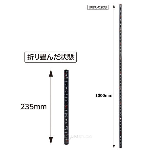 | 本体サイズ | 伸ばした時/全長1,000×巾15×厚さ3.2mm 収納時/全長235×巾15×厚さ16mm |