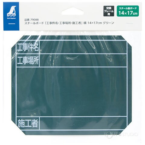 工事 黒板 掲示板 看板 スチールボード「工事件名・工事場所・施工者」横14×17cm グリーン シンワ測定