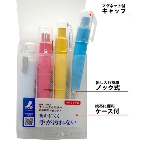 チョークホルダー 白赤黄青 4色セット シンワ測定 ノック式 マグネット 人気 黒板 おすすめ