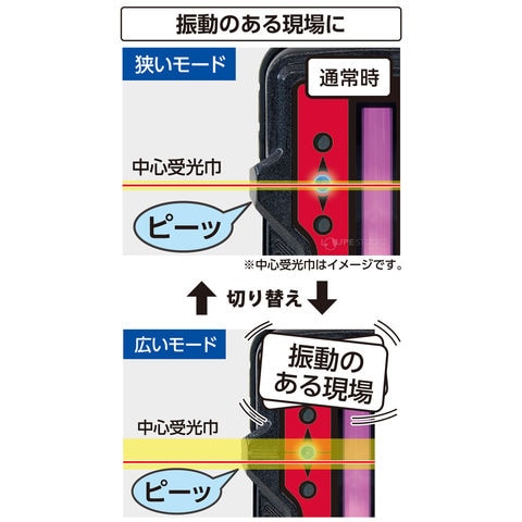- 通常時は狭いモードで、振動のある現場では広いモードに切り替えができます。