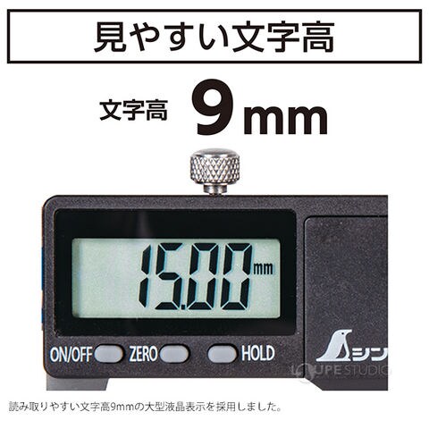 - 読み取りやすい文字高9mmの大型液晶表示を採用しました。