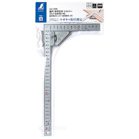 曲尺厚手広巾シルバー30cm表裏同目8段曲尺用ストッパー金属製付JIS 工具 DIY 大工道具 曲尺 止 ステンレス製 ケガキ作業 木材 シンワスペック
