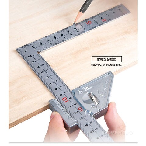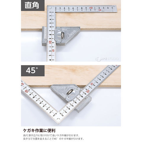 - 曲尺 厚手広巾に取り付けて長いケガキ線が引けます。