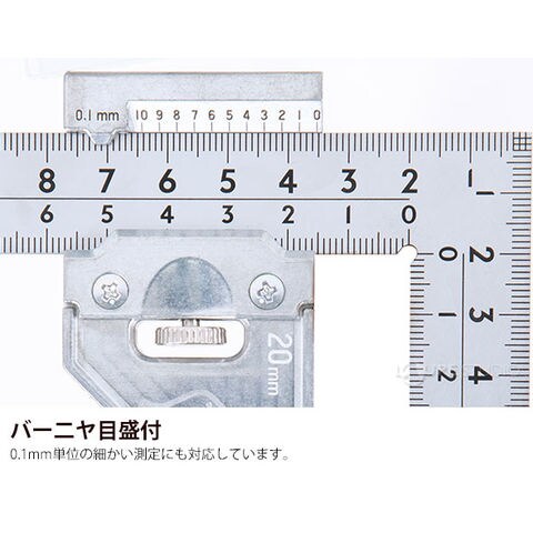 - 高い突き当て部が材料にしっかり当たるので、面取り材にも安定したケガキ線が引けます。