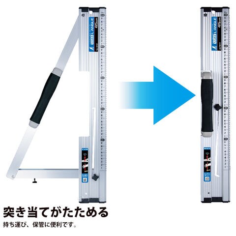 - 畳んだ状態から開くだけで簡単に丸ノコガイド定規に戻せます。
