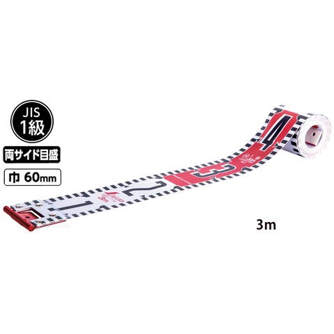 | 目盛 | 表面/タテ数字、両サイド目盛、20cm赤白、5mm単位 裏面/ヨコ数字、片サイド目盛、1m赤白、5mm単位 |