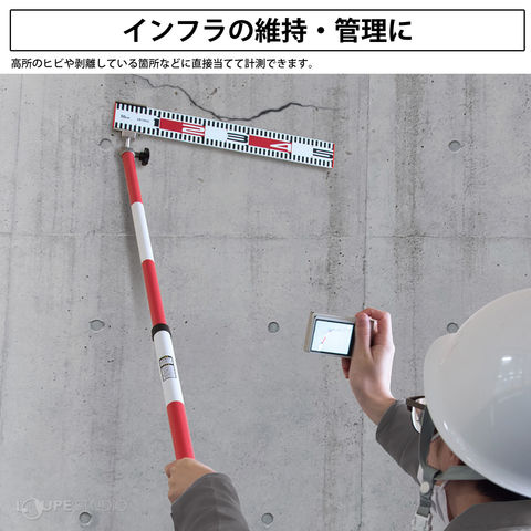 • ポールに標尺が付いているため、高所のヒビや剥離している箇所などに直接当てて計測できます。