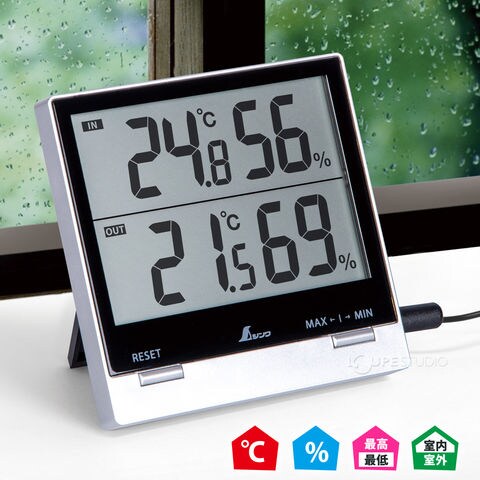 デジタル温湿度計 Smart C 最高 最低 室内 室外 防水外部センサー 温度計 湿度計 シンワ測定 置型 スタンド 壁掛け フック穴のレビュー