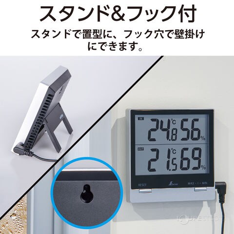 デジタル温湿度計 Smart C 最高 最低 室内 室外 防水外部センサー 温度計 湿度計 シンワ測定 置型 スタンド 壁掛け フック穴スペック