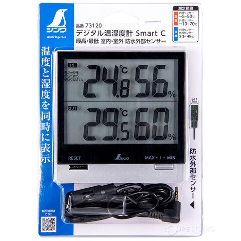 デジタル温湿度計 Smart C 最高 最低 室内 室外 防水外部センサー 温度計 湿度計 シンワ測定 置型 スタンド 壁掛け フック穴