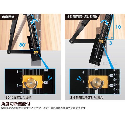 - 角度目盛、寸勾配目盛(返し勾配)付です。