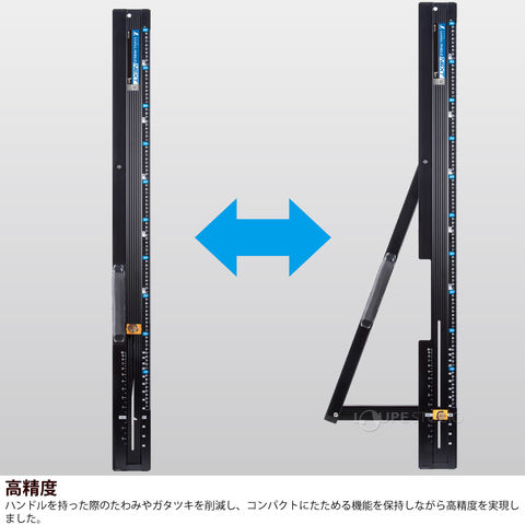 - 畳んだ状態から開くだけで簡単に丸ノコガイド定規として使用できます。