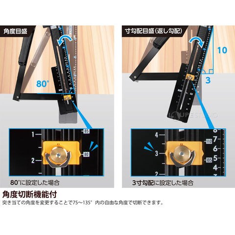 - 角度目盛、寸勾配目盛(返し勾配)付です。