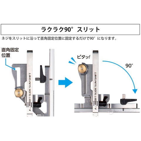 - ネジをスリットに沿って直角固定位置に固定するだけで90°になります。