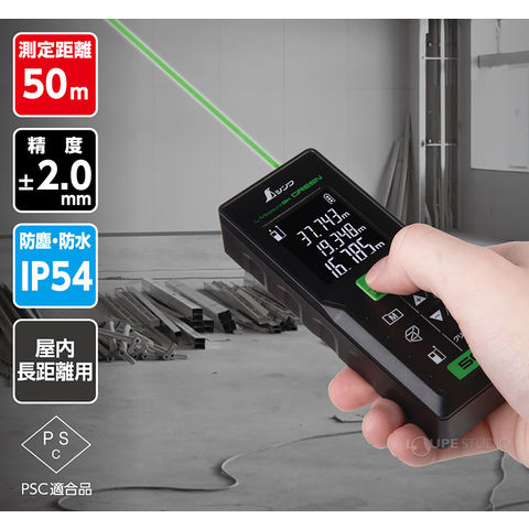レーザー距離計 L-Measure BK50 グリーン 建築 大工 作業 工具 距離 測定 DIY シンワ測定スペック