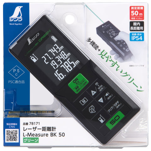 レーザー距離計 L-Measure BK50 グリーン 建築 大工 作業 工具 距離 測定 DIY シンワ測定