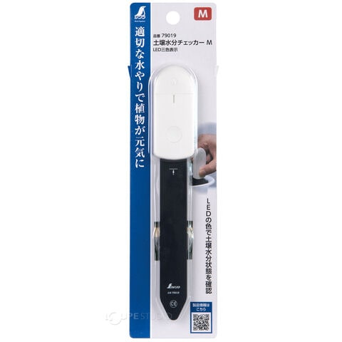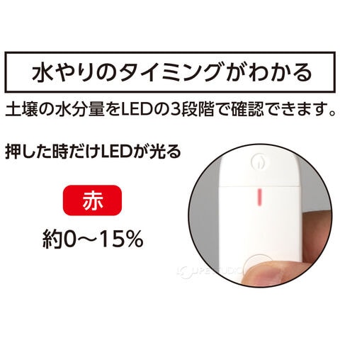 土壌に挿し込み、ボタンを押すだけで土壌の水分状態を3段階で確認できます。