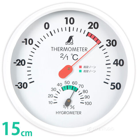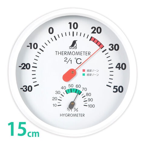- 快適温度と快適湿度の目盛に色をつけて分かりやすくしてあります。