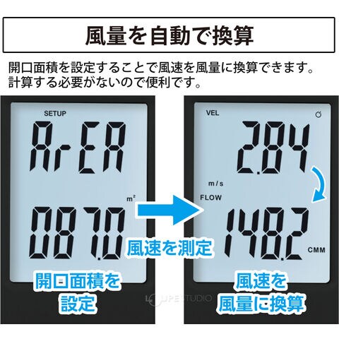 用途換気ダクト内、吹出口の風速・風量測定に。空気環境測定などに。