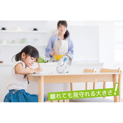 - 時間をしっかり意識できるサイズ。離れても見守れる。スタンドつき・壁掛け穴・磁石つきの3WAYで様々なシーンで使用可能。