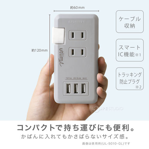 コンセント ポータブルコンセント コンパクト 携帯 スマホ タブレット 充電 USB USBポート付 ユートリムエル ソニック sonic 延長コード 複数同時充電