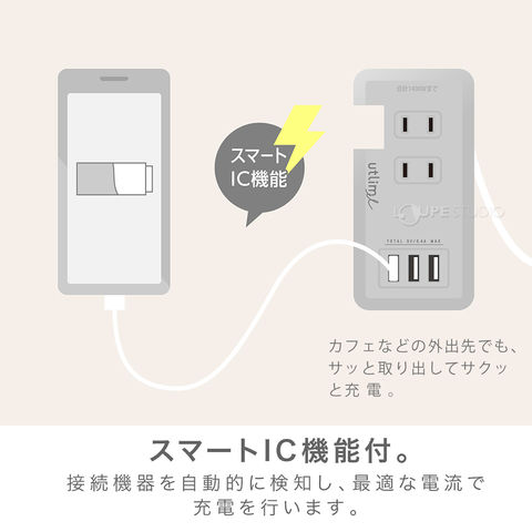 コンセント ポータブルコンセント コンパクト 携帯 スマホ タブレット 充電 USB USBポート付 ユートリムエル ソニック sonic 延長コード 複数同時充電スペック