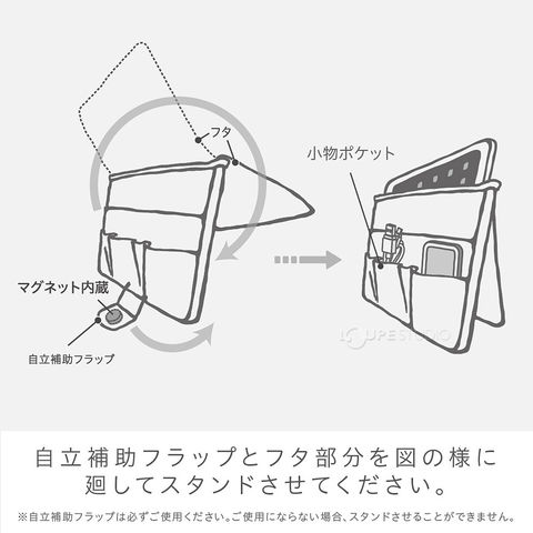 - マグネットでピタっと安定。あっという間にすっきりスタンド!