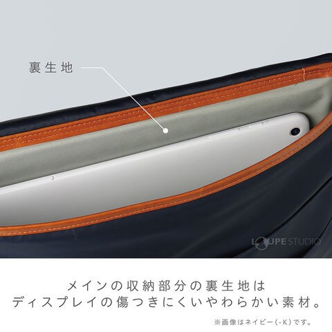 - メインの収納部分の裏生地はディスプレイの傷つきにくいやわらかい素材。