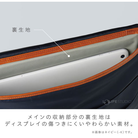 - メインの収納部分の裏生地はディスプレイの傷つきにくいやわらかい素材。