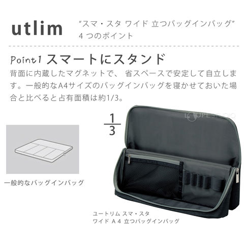 バッグ ノートパソコン タブレット スマートフォン 収納 小物 ケーブル 筆記用具 会議 商談 テレワークユートリム スマ・スタ ワイド A4 立つバッグインバッグ ソニック sonicスペック