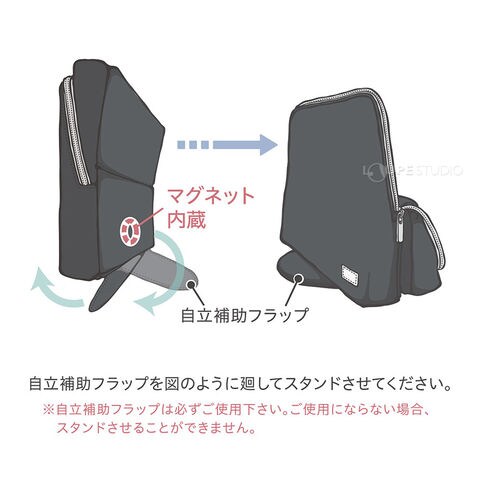 • マグネットでピタッと安定。あっと言う間にすっきりスタンド!自立補助フラップで後ろに倒れにくい。