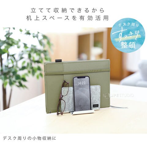 - 最大17インチまでのノートPC・タブレット収納可能。その他手帳など、デスク周りの小物収納にも。