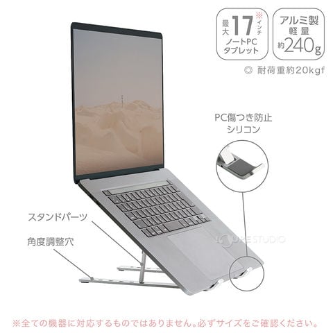 - 最大17インチまでの ノートパソコン、タブレットPC、液晶タブレット に対応。