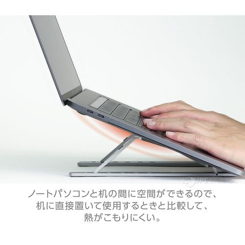 ※全ての機器に対応するものではありません。必ずサイズをご確認ください。 - ノートパソコンと机の間に空間ができるので、机に直接置いて使用するときと比較して、熱がこもりにくい。