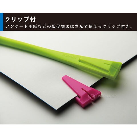 - アンケート用紙などの販促物に、はさんで使えるクリップ付です。
