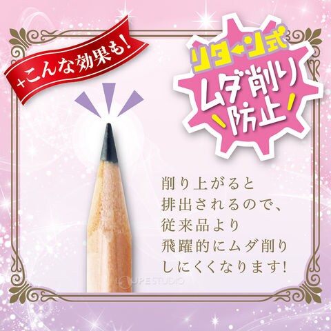 - 削り上がると鉛筆が排出される「リターン式ムダ削り防止」で、従来品より飛躍的にムダ削りを防止!