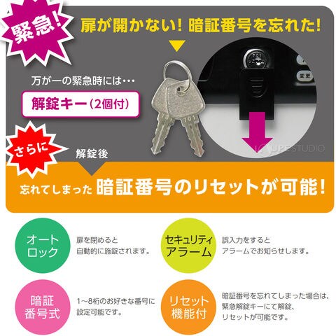 • 緊急解錠キー(2個付)暗証番号をなくしても安心です