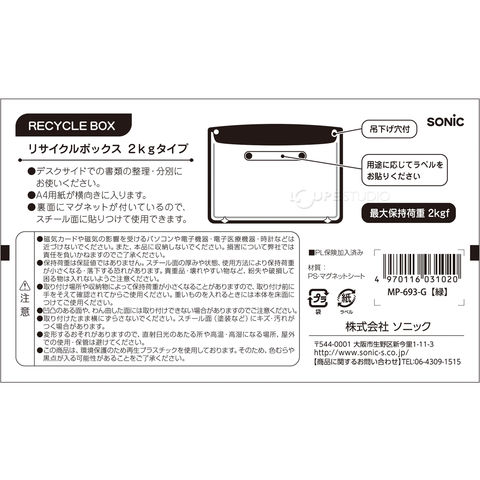 マグネット付き 収納 おしゃれ かわいい 文具 おしゃれ おすすめ 収納 オフィス 書類 デスク 横 リサイクルボックス 2kgタイプ MP-693 ソニック sonicスペック