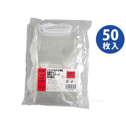 名札 ケース 首掛け 吊り下げ クリア 文具 イベント 展示会 スタッフ 社員証 小学校 学校 会社 施設 イベント吊下げ名札 名刺サイズ 薄型タイプ50枚入 VN-212 ソニック sonic