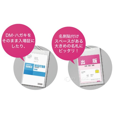 名札 ケース 首掛け 吊り下げ クリア 文具 イベント 展示会 スタッフ 小学校 学校 会社 施設 イベント吊下げ名札 ハガキ用 薄型タイプ50枚入 VN-8511 ソニック sonicスペック