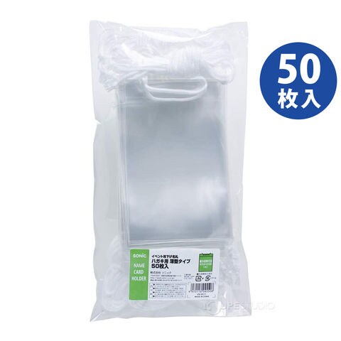 名札 ケース 首掛け 吊り下げ クリア 文具 イベント 展示会 スタッフ 小学校 学校 会社 施設 イベント吊下げ名札 ハガキ用 薄型タイプ50枚入 VN-8511 ソニック sonic