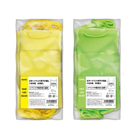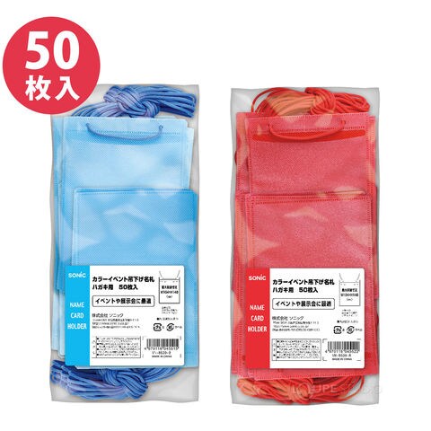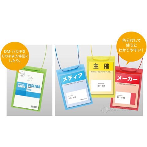 名札 ケース 首掛け 吊り下げ 文具 イベント 展示会 スタッフ 小学校 学校 会社 施設 カラーイベント吊下げ名札 ハガキ用 50枚入 VN-8539 ソニック sonic