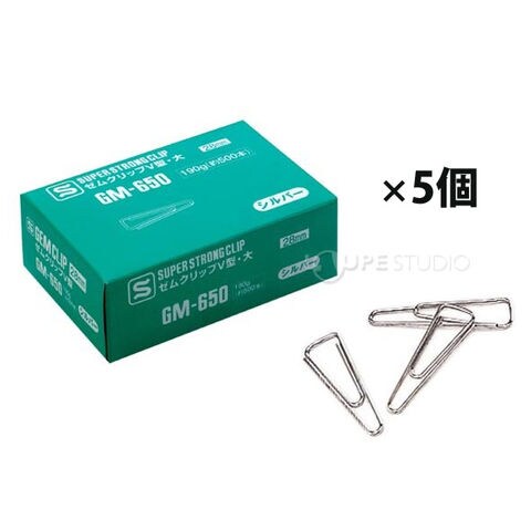 クリップ Vゼムクリップ 大 シルバー 5個セット スチール 文房具 事務用品 オフィス 学校